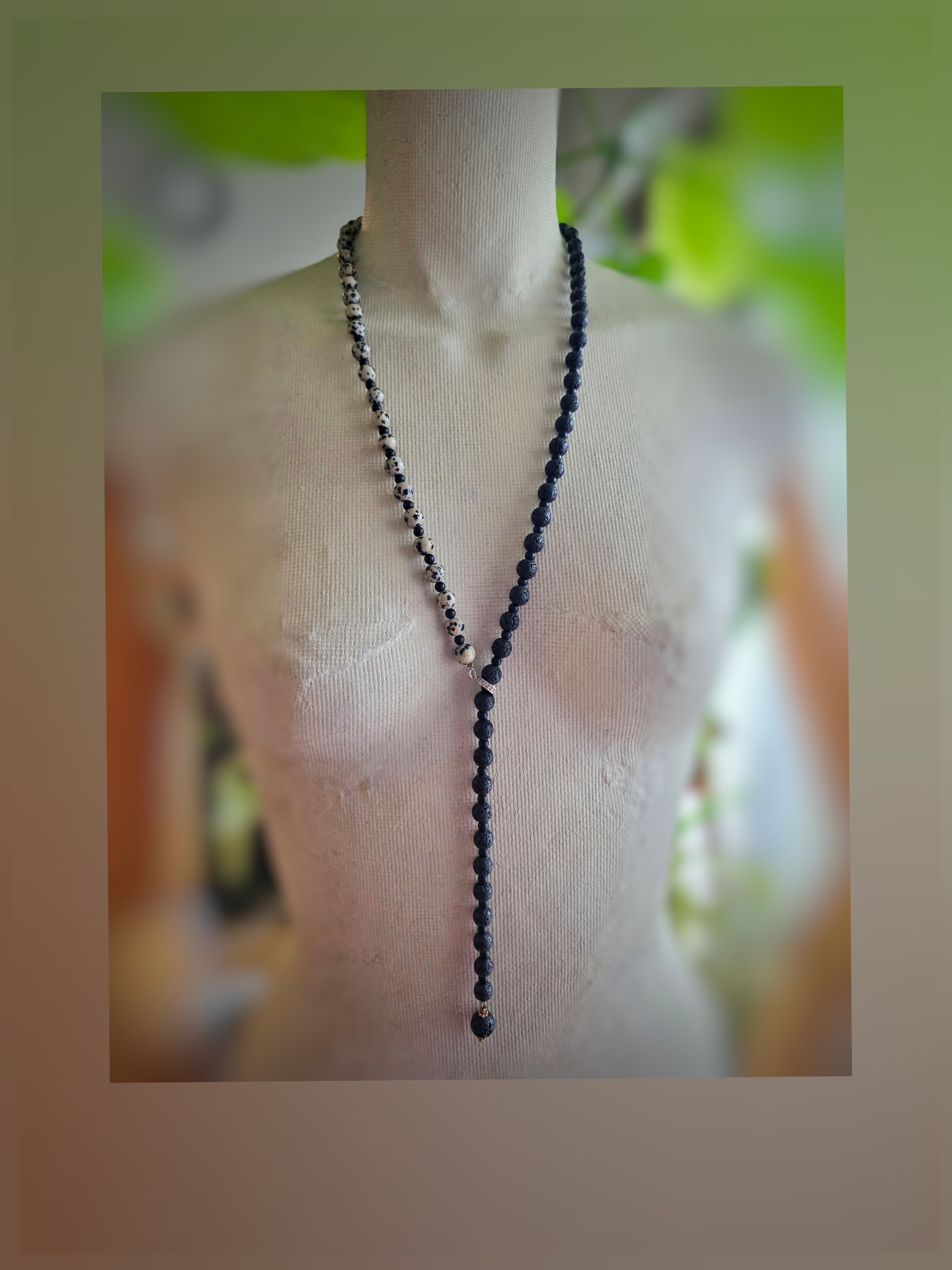 そのダルメシアン柄そのままの天然石がダルメシアンジャスパー。木馬館ではこれまで、形違いのダルメシアンジャスパーで何度か作品にして来ました。