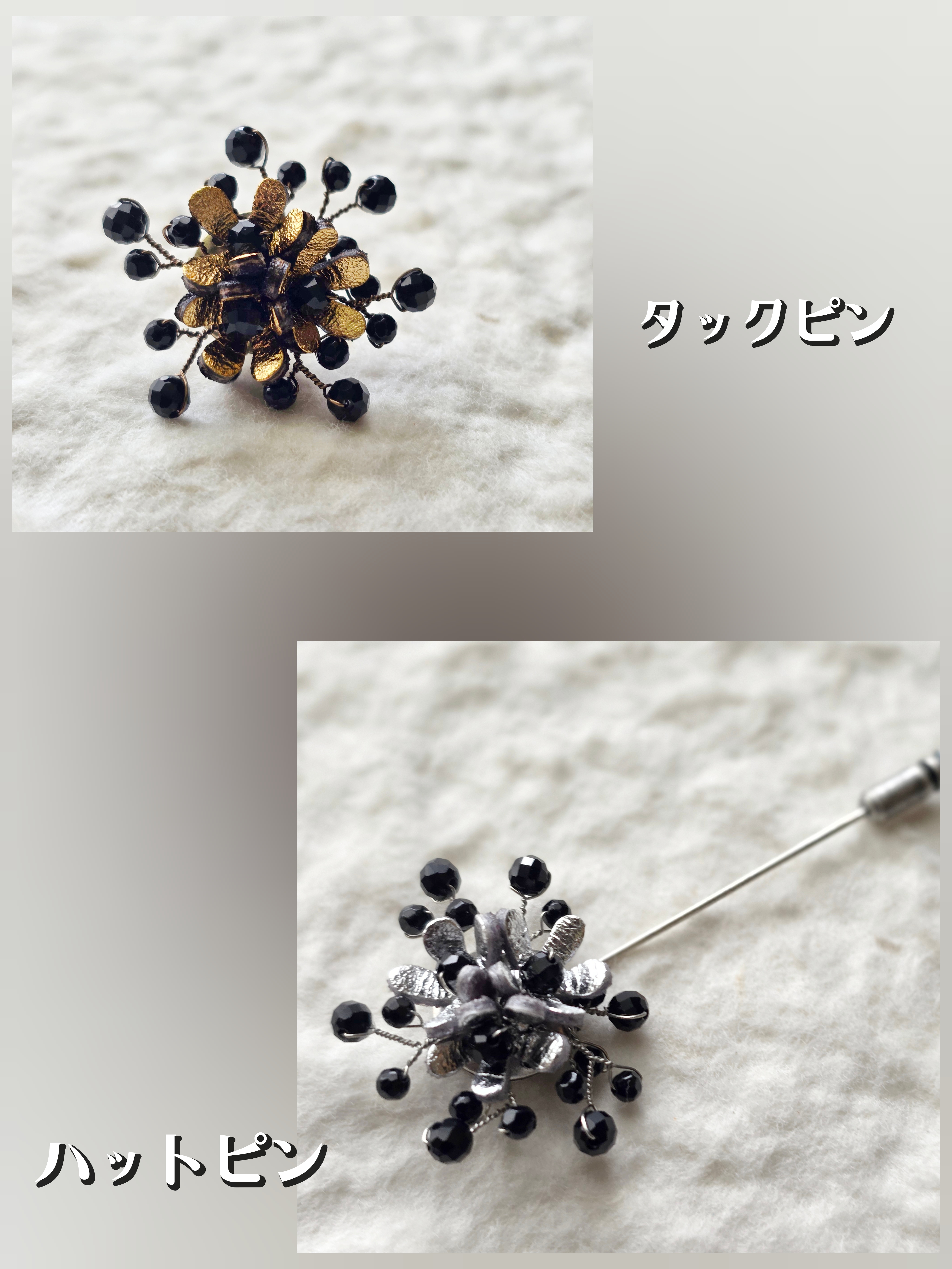 そして本革のお花とオニキスで作るブローチをセットにしました。